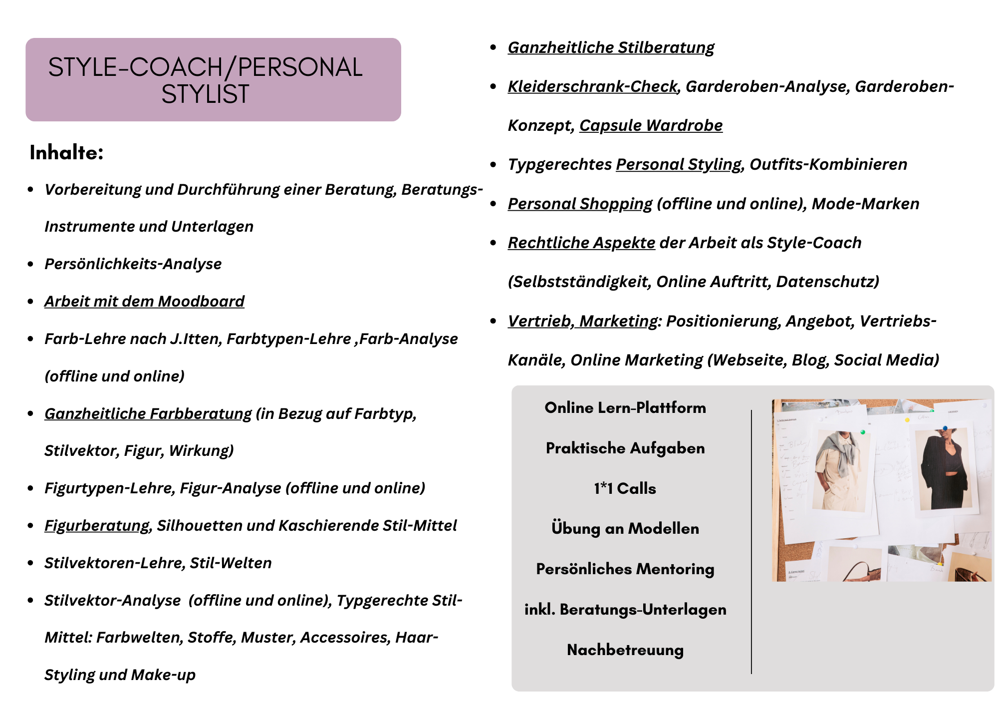 Perfekt für dich, wenn du Menschen im Alltag begleiten, Outfits zusammenstellen und Personal Shopping anbieten willst.