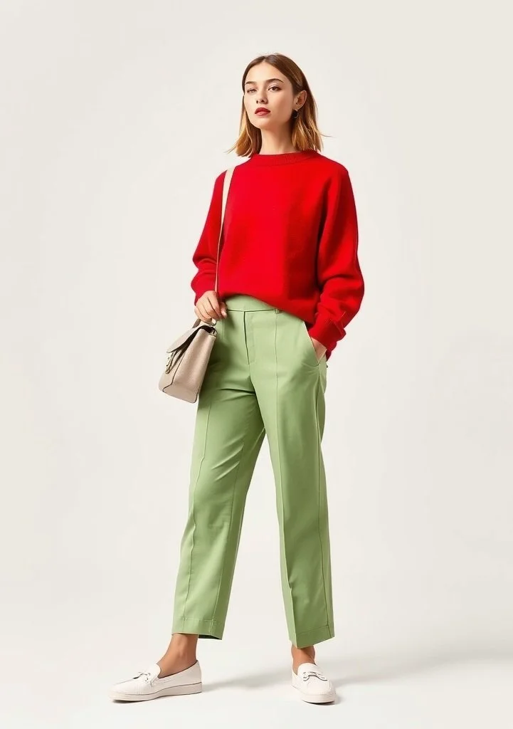 • Stoffhose oder Chino-Hose mit Bluse und leichtem Cardigan oder Blazer